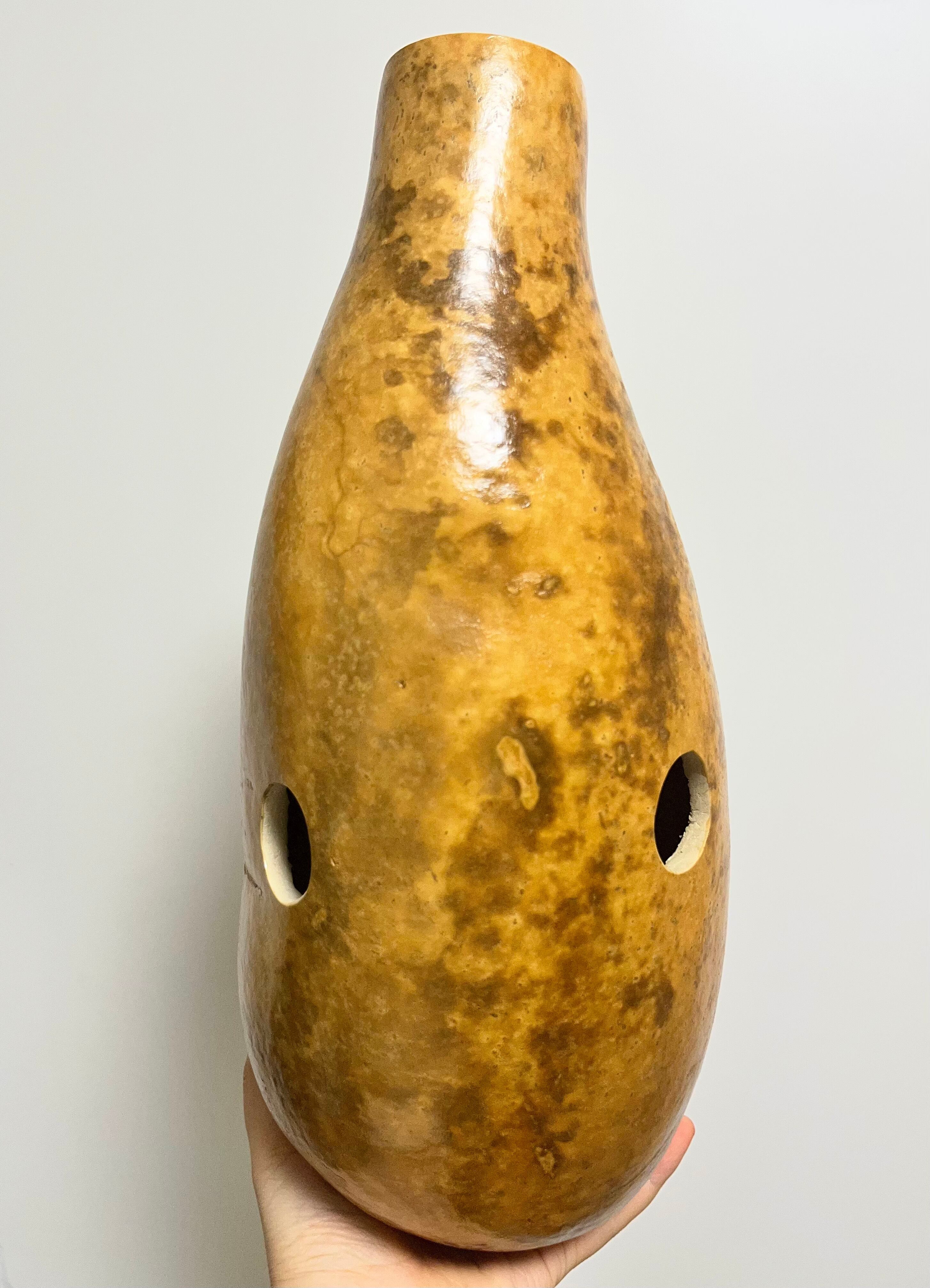 海外産のひょうたんを使用し、形状や厚みに合わせて、溝の深さや幅を一本ずつ調整しながら手仕事で仕上げました。